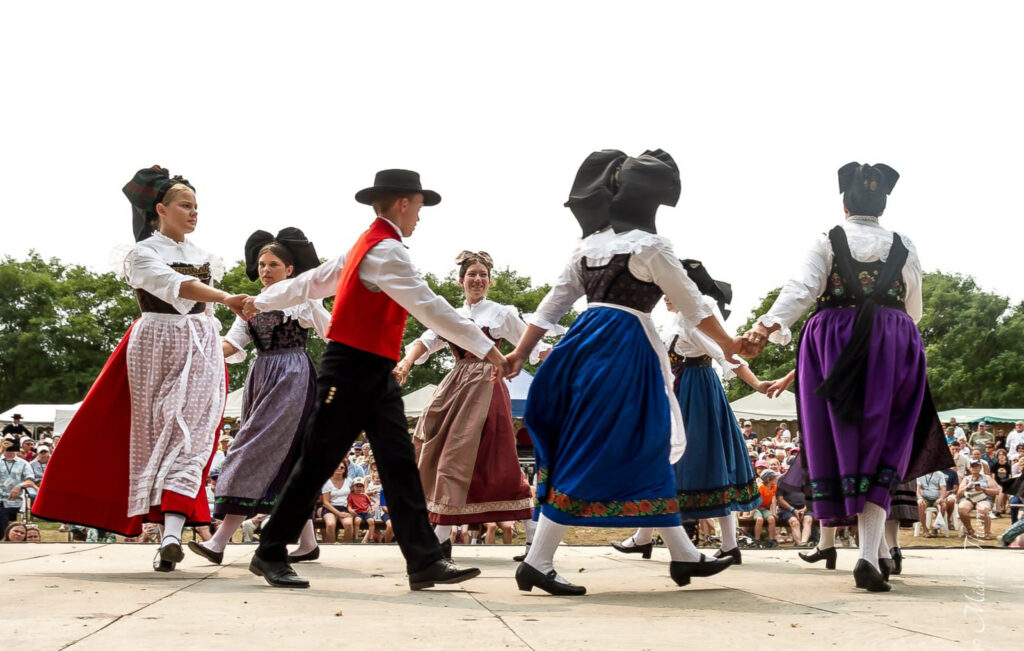 Le groupe folklorique de l’Edal lors d’un spectacle en plein air.